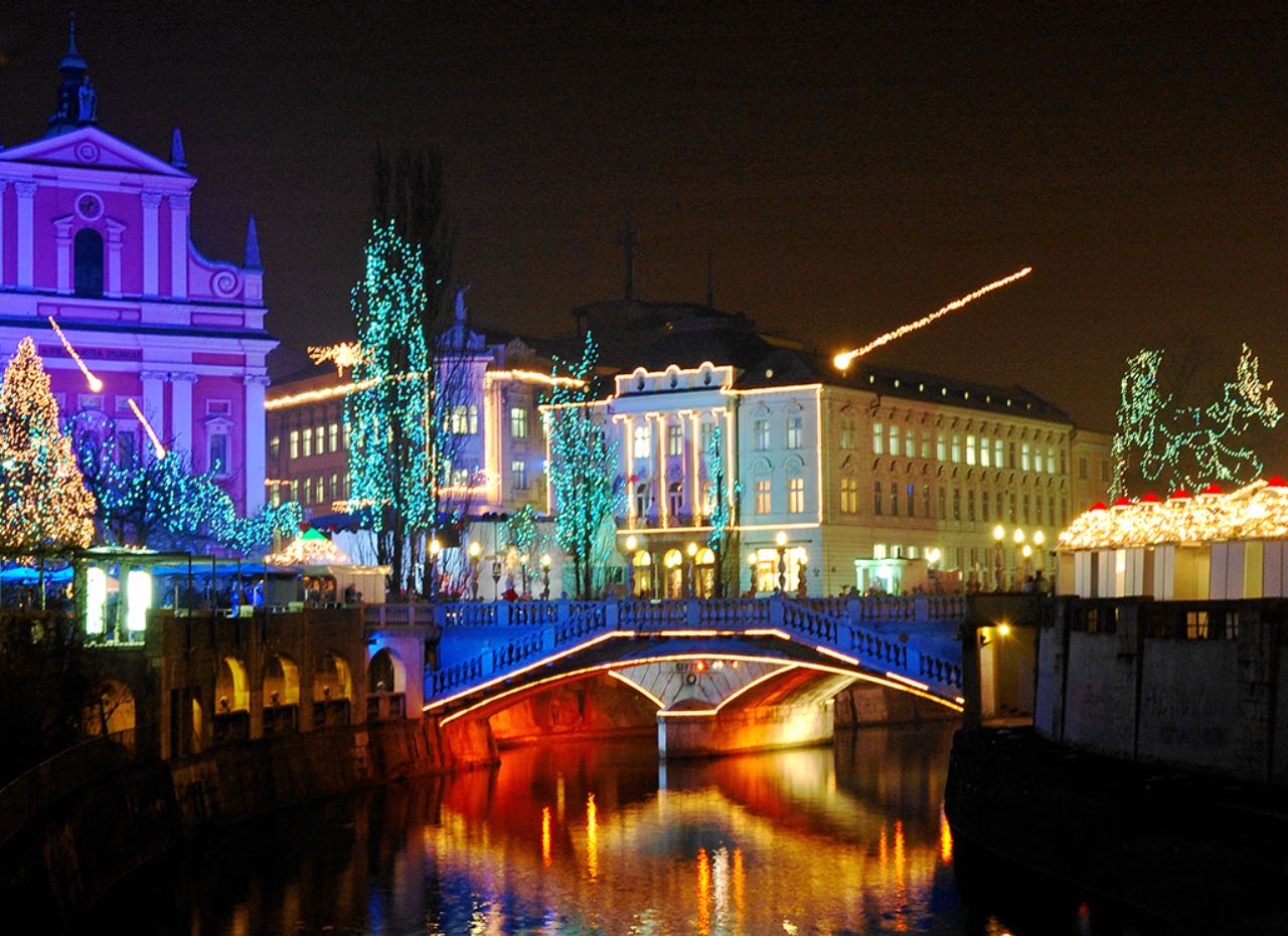 Пристигнување во Љубљана во претпладневните часови. Организиран разглед на Љубљана со локален туристички водич: Симболот на градот-Змејскиот Мост, Трите мостови на реката Љубљаница, Робовата Фонтана или Фонтаната на трите реки-најпозната фонтана од бел мермер, Фрањевачката Црква или Црквата на Воведувањето на Пресвета Богородица која е уште еден симбол на градот, Прешерневиот Споменик во чест на најголемиот словенечки поет Франц Прешерн. Слободно попладне за индивидуални активности и прошетки низ двете раскошно украсени улици кои се наоѓаат од двете страни на реката Љубљаница каде се распослани божиќните штандови кои изобилуваат со сувенири со божиќни мотиви, капи, шалови и ракавици, но и со мноштво миризливи колачи и топли пијалоци. Заминување кон Крањ. Сместување во хотел. Вечера. Ноќевање.